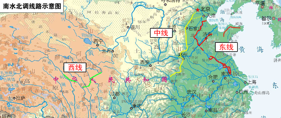 当前实施的东线一期工程和中线一期工程